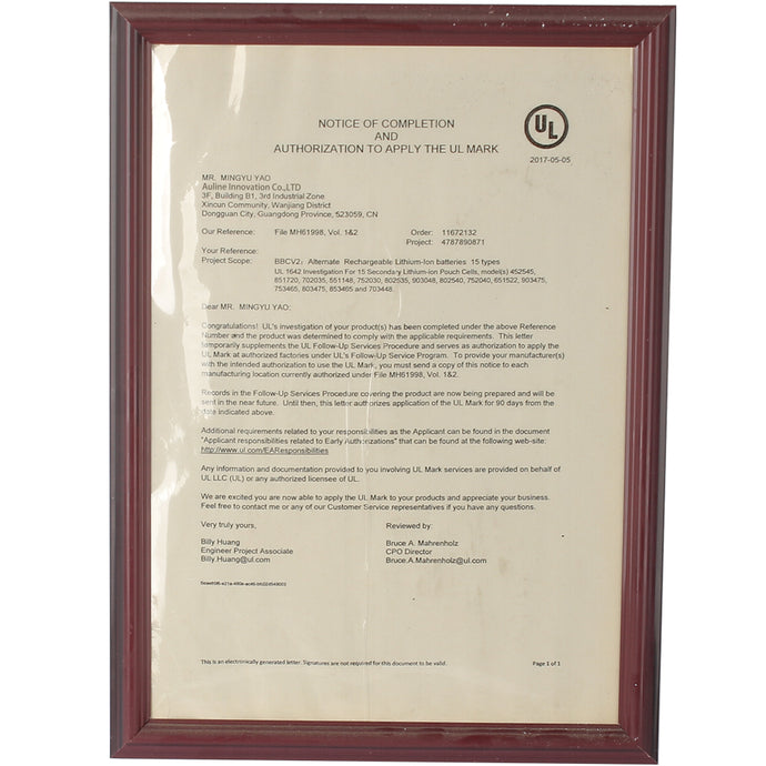 This qualification is the most basic in the battery qualification certification, pass section 38.3 of the UN Manual of Tests and Criteria (UN Transportation Testing) to ensure the safety of lithium batteries during shipping.