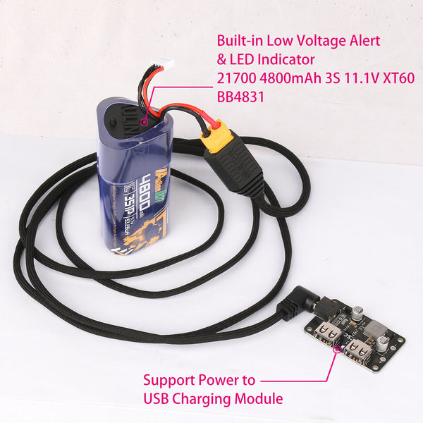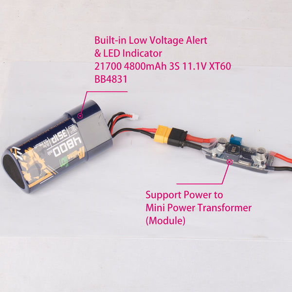 2, Low Voltage Alert: It's different with Protection Board what's we used at A2641 which is for DJI FPV Goggles, when the voltage low to around 12v that lead protection board cut off power directly, it's a nightmare for us when we flying you know. Our new Low Voltage Alert will not let it happen, it's like one alarm just remaind you it's time flying back. It will not cut any power.